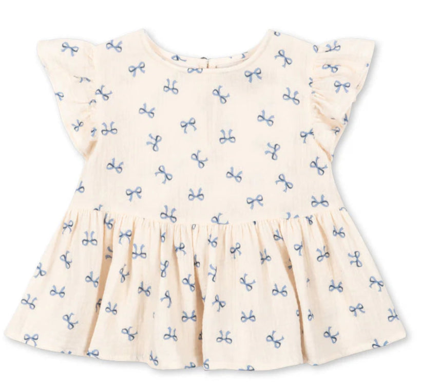 Bluzka COCO Bow Blue z lekkiego i oddychającego muślinu. Wykonana w 100% z bawełny organicznej.