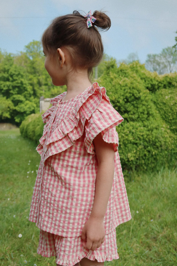 Koszula KIM frill shorts gots FLAMINGO PLUME CHECK