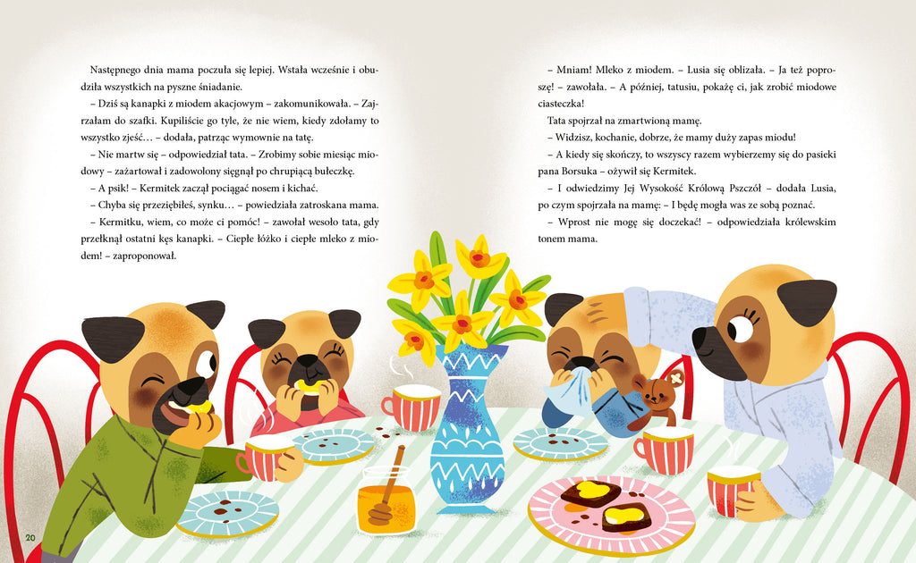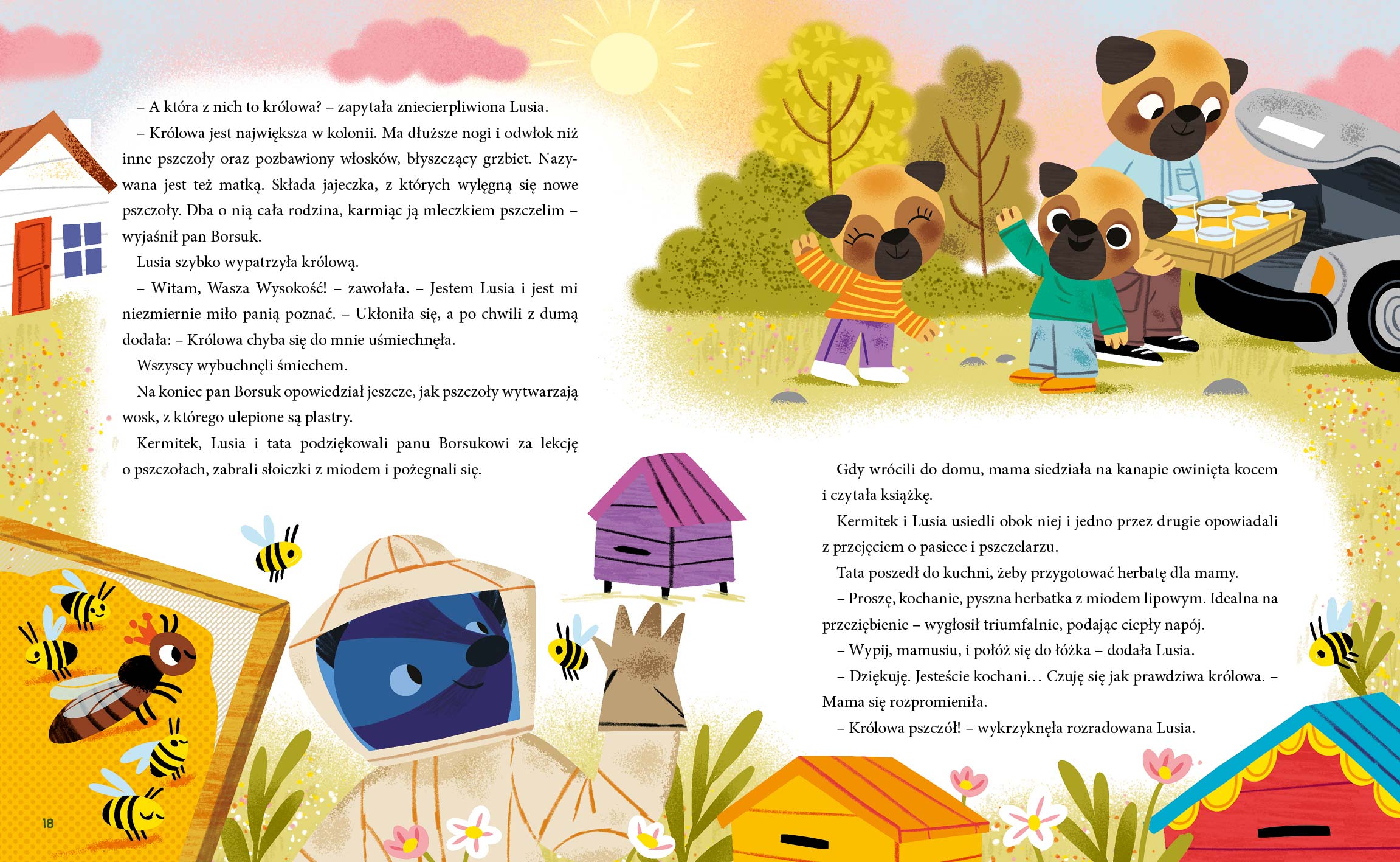 Kermitek chce stworzyć obrazek przedstawiający symbol wiosny, jednak okazuje się to wyjątkowo trudne… Razem z Lusią i tatą wyruszają na rowerową wyprawę, podczas której napotykają burzę. W lokalnej pasiece dowiadują się, jak powstaje miód. Przy okazji wyjścia na łąkę przedszkolaki obserwują przyrodę budzącą się do życia, robią wianki z kwiatów i próbują wiosennych przysmaków.
